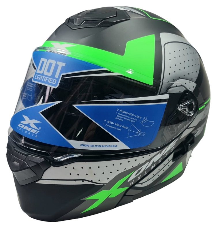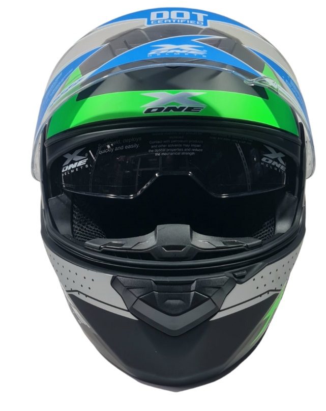 Стилна и надеждна каска. Оборудвана е с вградени слънчеви очила за удобство при ярка светлина. Има вентилационни отвори за по-добра циркулация на въздуха и комфорт при дълги пътувания. Подплатата е мека, сваляща се и лесна за почистване. КАСКА ЗА МОТОР в Син/зелен цвят е идеален избор за безопасност и комфорт на пътя.