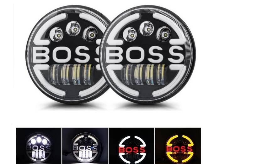 Комплект от 2бр. универсален 7″ инча 18см ЛЕД LED фар лампа халоген 12V-24V къси/дълги с DRL дневни светлини мигач бяло-жълто 6500lm