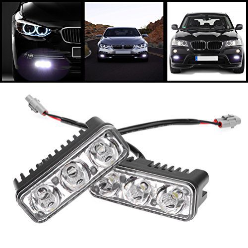 Чифт универсални LED дневни светлини с 3 диода, подходящи за всякакви автомобили. Удароустойчиви, водоустойчиви и устойчиви на прах и корозия. LED светлините са подходящи за използване като дневни светлини на автомобила.