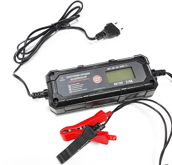 Зарядното е подходящо за 6V и 12V акумулатори (киселинни, гелови, обикновени,АГМ и т.н.)